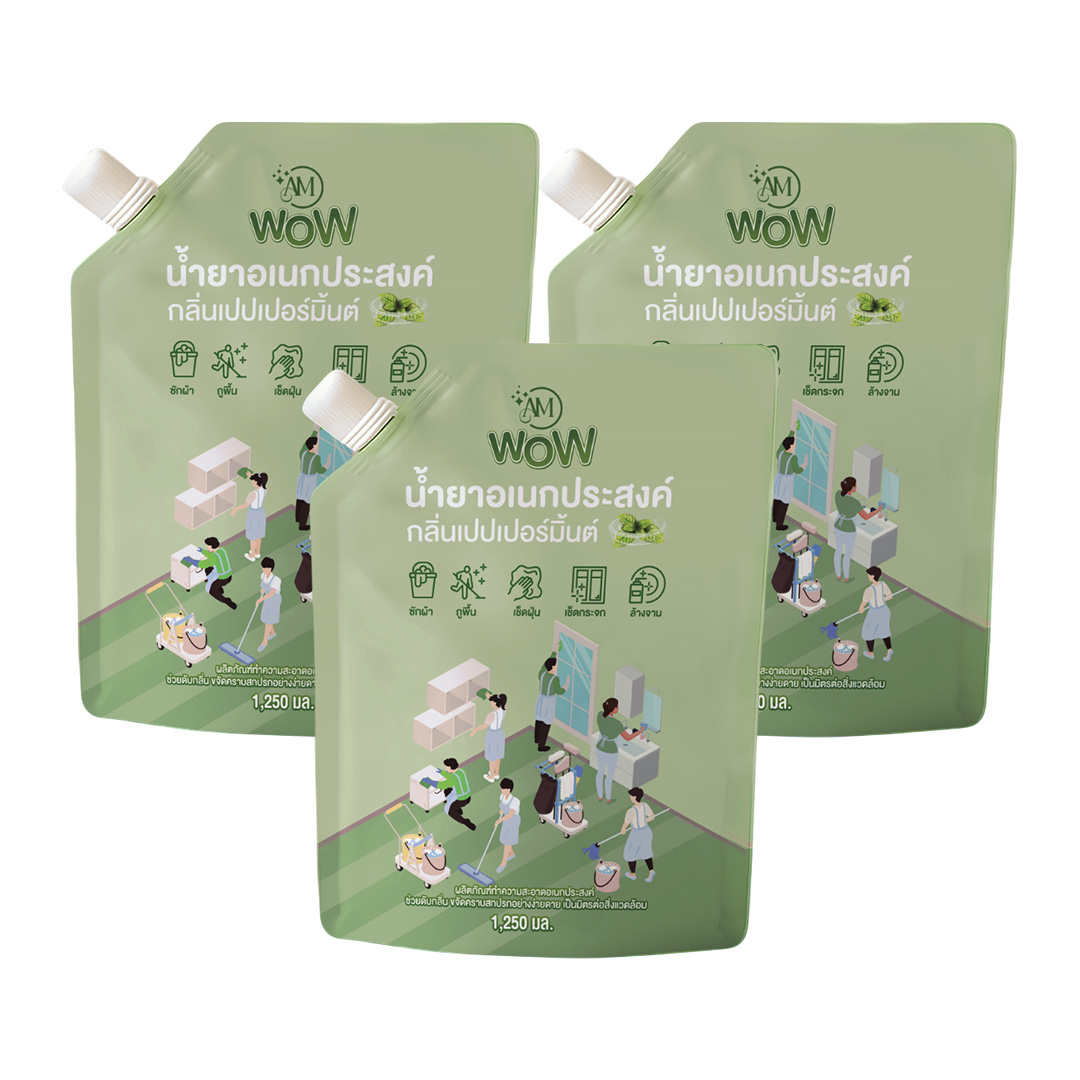 AM WOW น้ำยาอเนกประสงค์ กลิ่นเปปเปอร์มิ้นต์ 3 ถุง