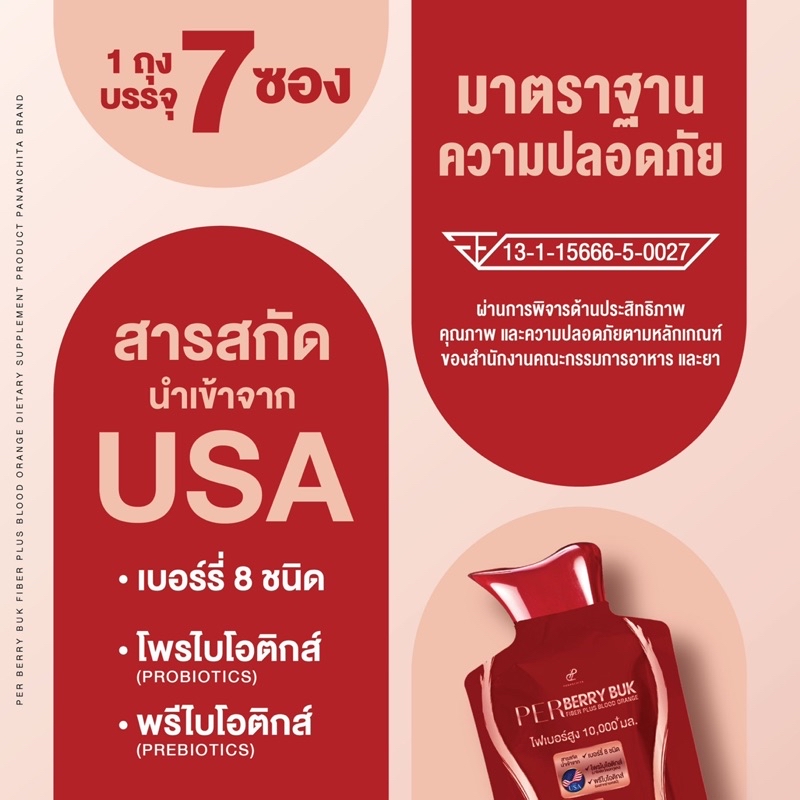 เพอร์ เบอร์รี่ บุก ไฟเบอร์ พลัส บลัดออเรนจ์ (ผลิตภัณฑ์เสริมอาหาร) ตรา ปนันชิตา